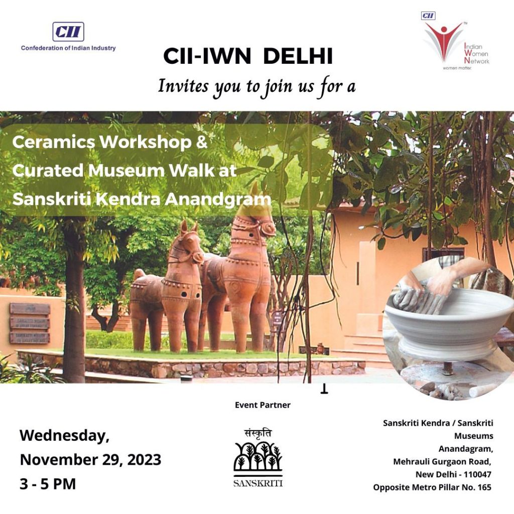 Ashwini’s passion for the crafts is widely acknowledged. She has always strived to promote crafts over the last two decades, demonstrating a consistent dedication to preserving traditional art forms and supporting artisans through various initiatives and projects. Alongside her fellow Executive Committee Members, of CII IWN-Delhi Co- Chair Sushmita Aggarwal and Garima Jain, she curated and presented a ceramics workshop at Sanskriti Anandgram. A Museum walk of the Terracotta and Textile Museums was also conducted.