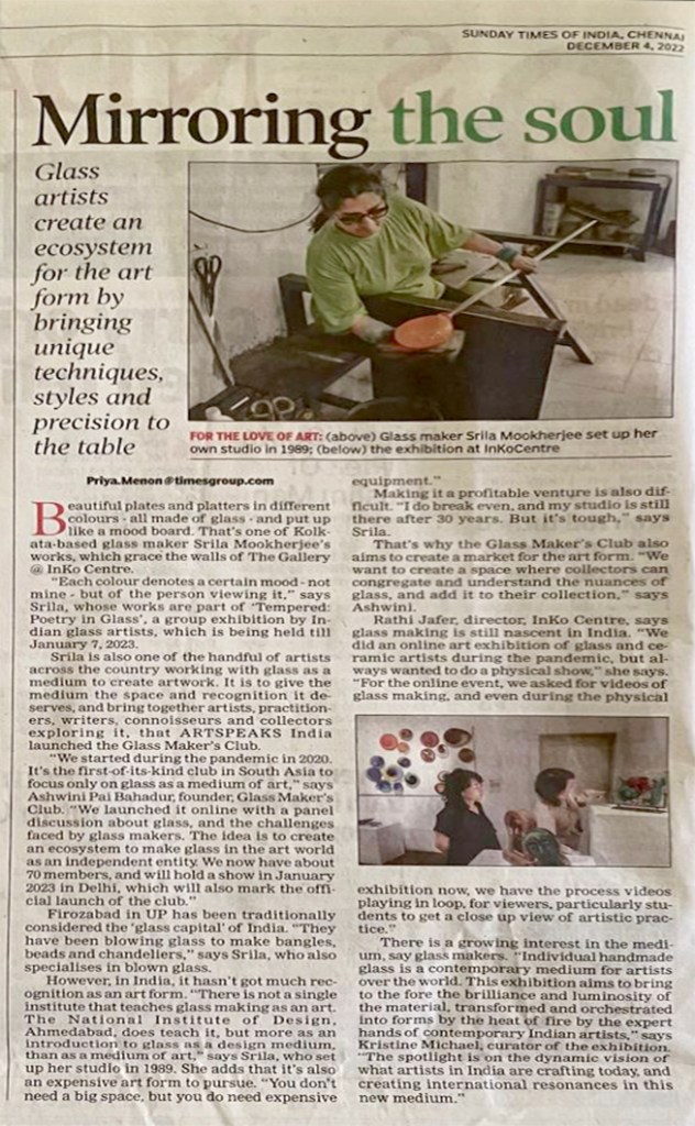 “We began during the pandemic in 2020. It’s the first-of-its-kind Club in South Asia to focus only on glass as a medium of art,” said Ashwini Pai Bahadur, Founder Glass Maker’s Club. “We launched it online with a panel discussion about glass and the challenges faced by glass makers. The idea is to create an ecosystem to make glass in the art world an independent entity. We now have about 50 Members and will hold a show in January 2023 in Delhi, marking the club’s official launch.” According to Curator Kristine Michael, “This exhibition aims to bring to the brilliance and luminosity of the material, transformed and orchestrated into forms by the expert hands of contemporary Indian artists”.