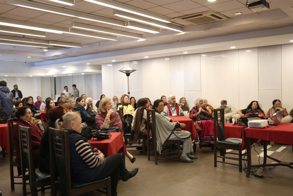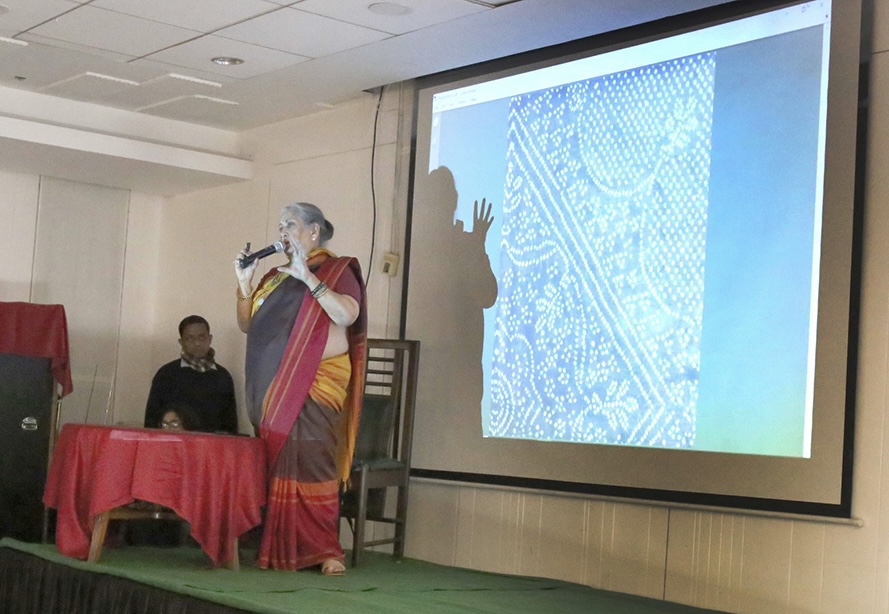 Ashwini presented and organised a discussion on Fabric defining Life: A Presentation by Malvika Singh facilitated by Lakshmi Chandra which outlines Malvika Singh’s Sarees of Memory Project, with weavers of 21 traditional saris-crafting designs and kickstarting bouts of reclamation that ensured the weavers gainful involvement. Malvika presented her exquisite collection to the Members of the Women’s International Club accompanied by a riveting illustrated talk on the role of fabric and how it speaks a borderless language of humanity and friendship.